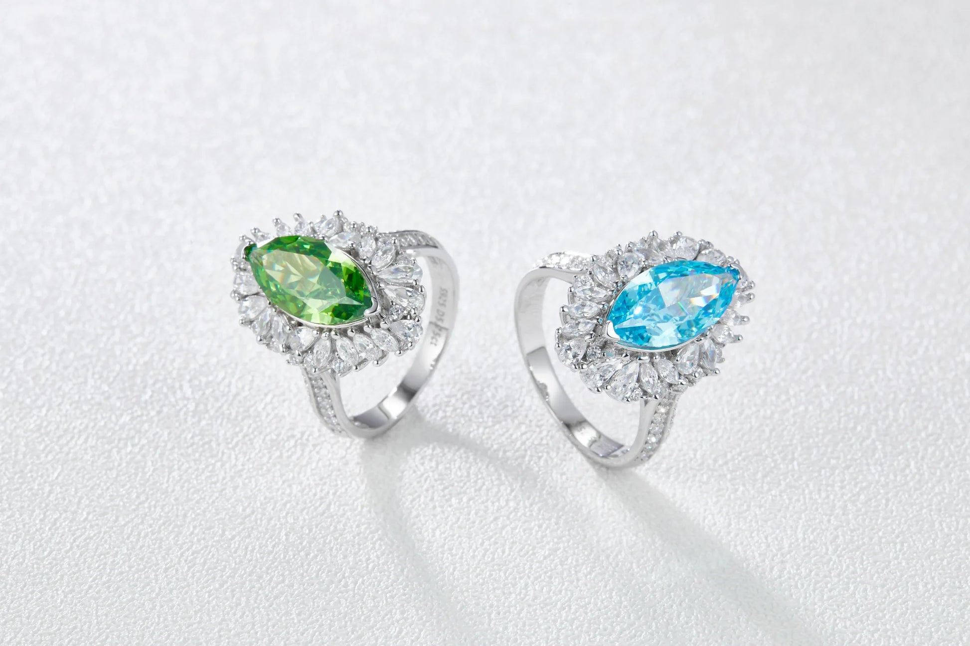 Main Stone: High Carbon Simulated Diamond; Secondary Stones: imported 5A white cubic zirconia;