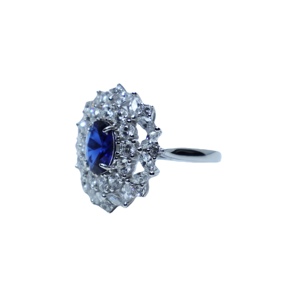 Main Stone: Blue Spinel; Accent Stones: imported 5A white cubic zirconia;
