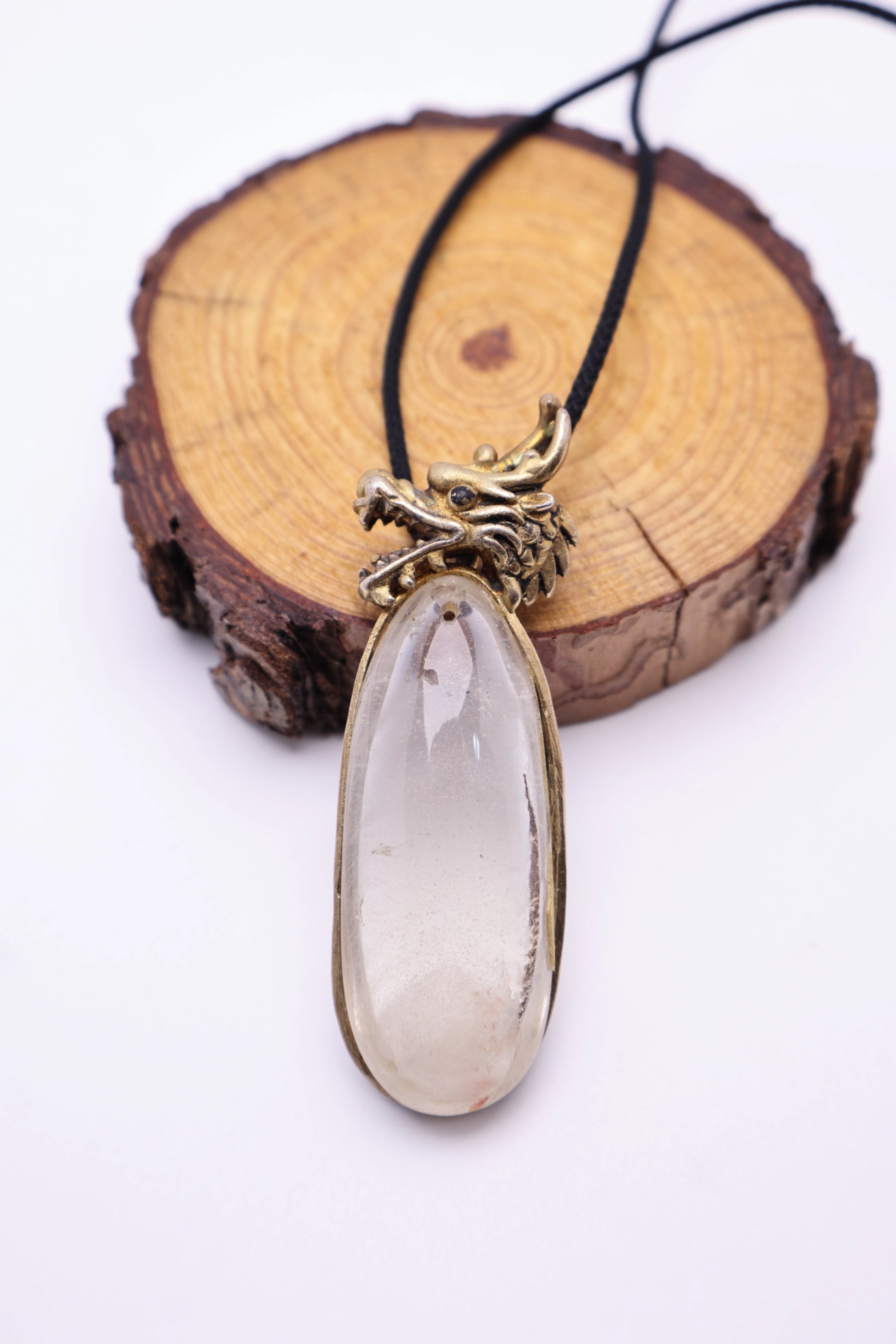 Handcrafted Tiger Spirit Necklace with Natural Clear Quartz Crystal