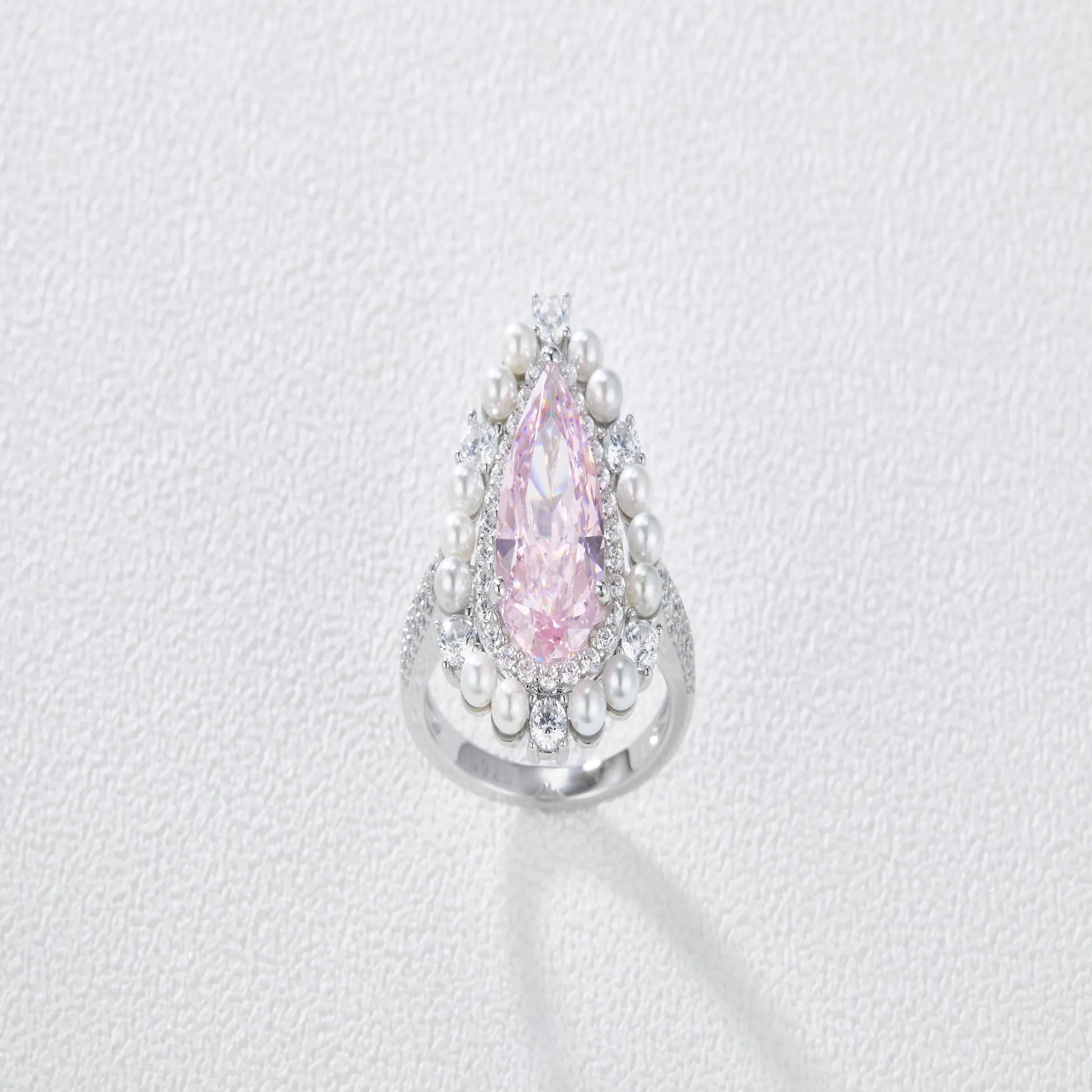 Main Stone: High Carbon Simulated Diamond; Secondary Stones: imported 5A white cubic zirconia; Secondary Stones: pearls;