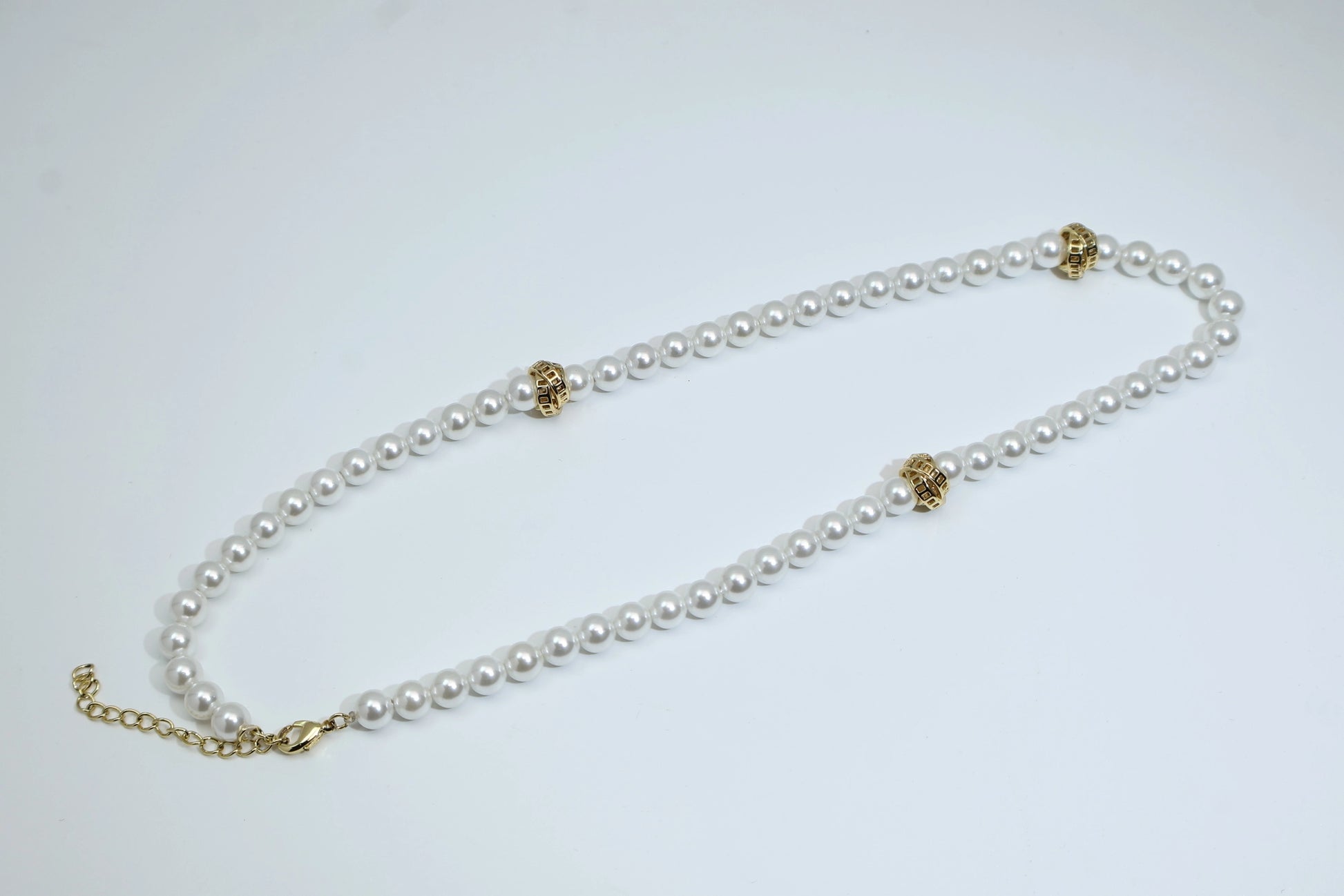 A pearl necklace that can be worn alone or layered. A must-have for both elegant ladies and fashionistas. Four layers of genuine gold plating.