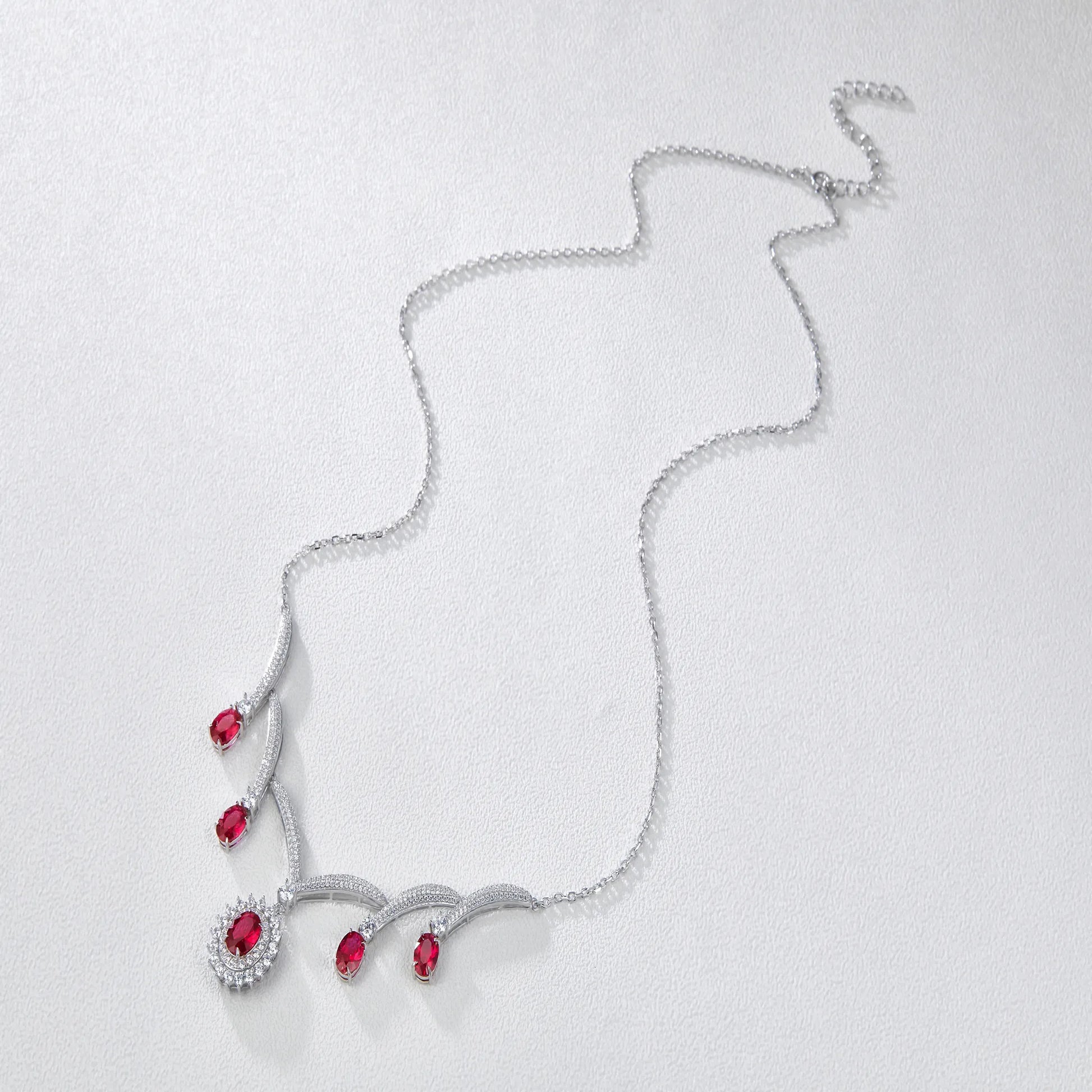 Size: Chain length 50+5CM extension chain, pendant 95*42MM. This luxurious ruby necklace features a red ruby main stone and imported white zircon as a secondary stone. It's perfect for evening events and bridal wear. Matching earrings are also available. It's plated with four layers of genuine gold.