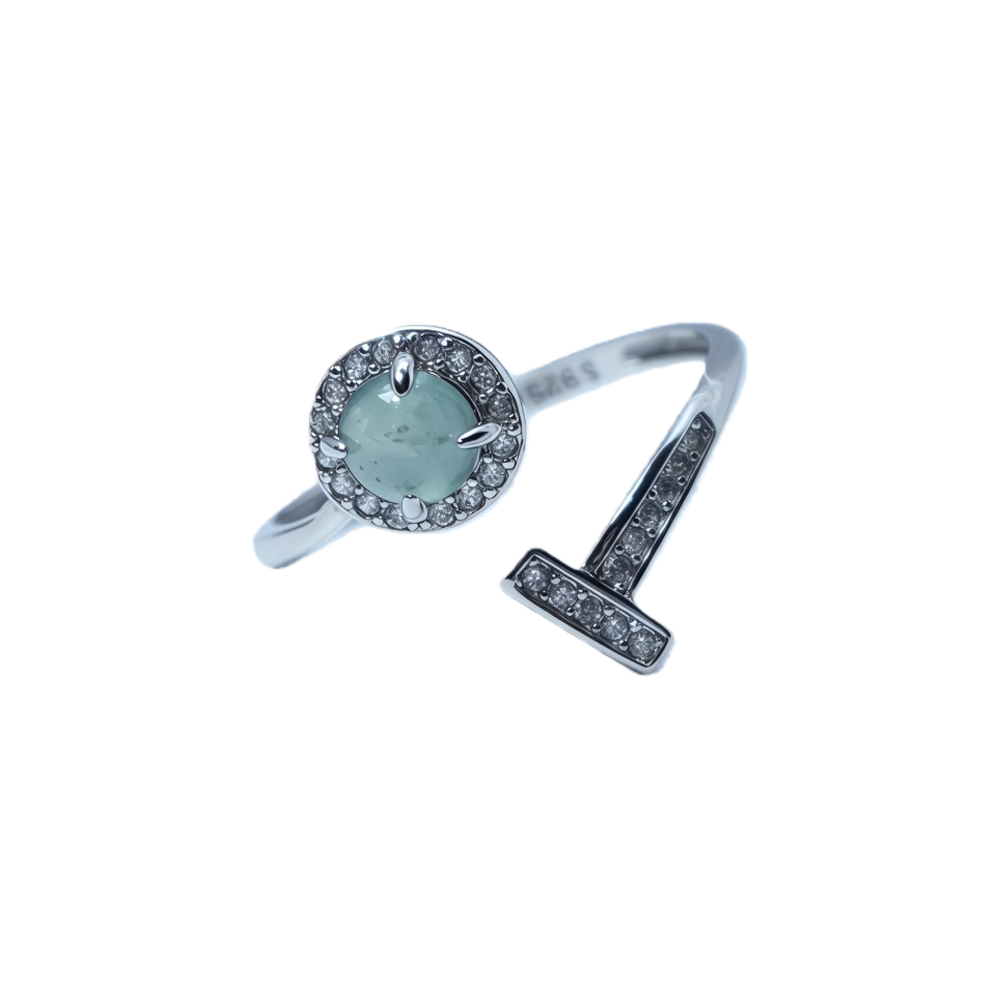 Weight: 1.3g; Main Stone: Jade; Accent Stones: imported 5A white cubic zirconia; Plating: White Gold Plated; Material: 925 Sterling Silver; Size: US size6# 7.5MM; Features: The opening is adjustable in size, and it features four layers of genuine gold plating.