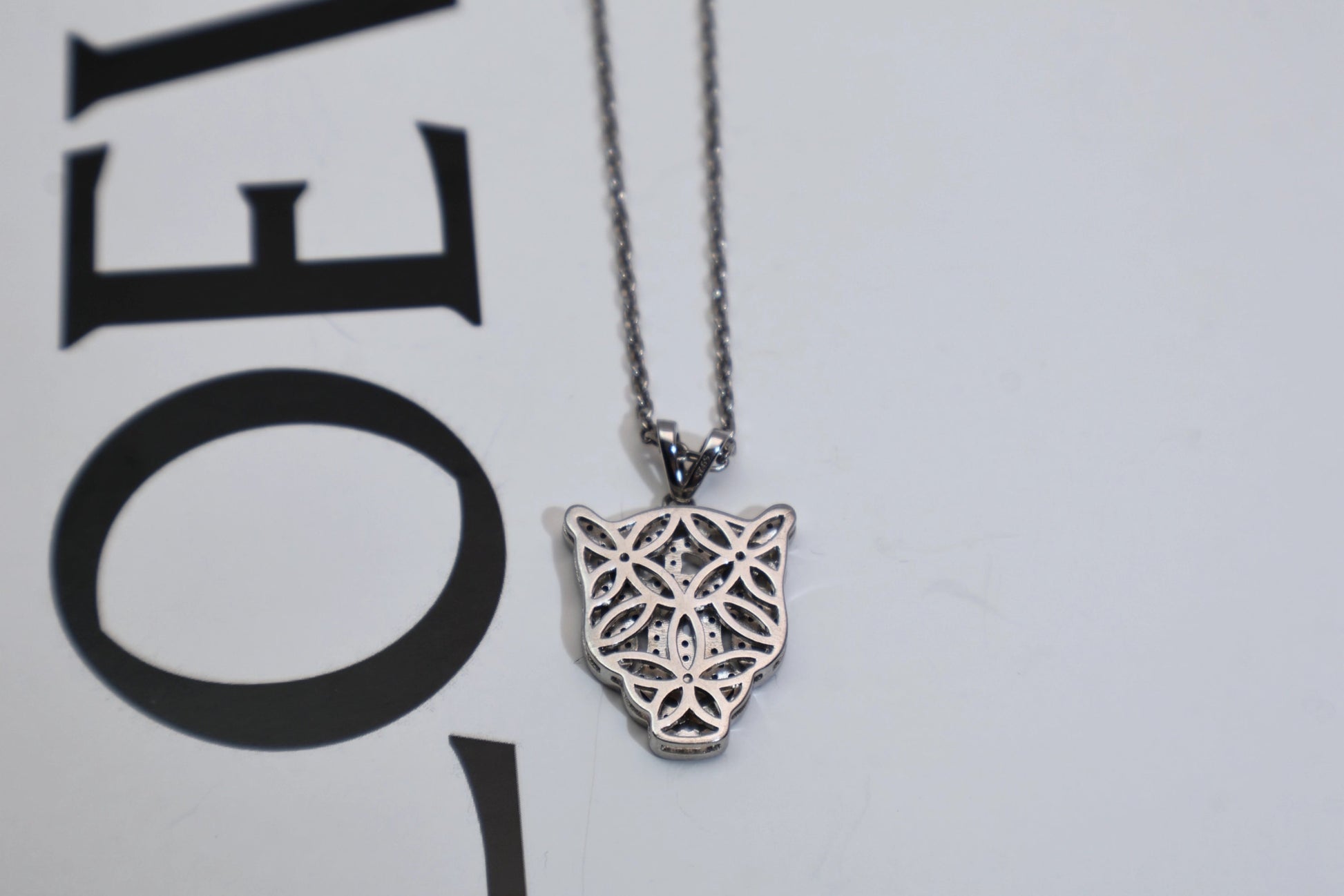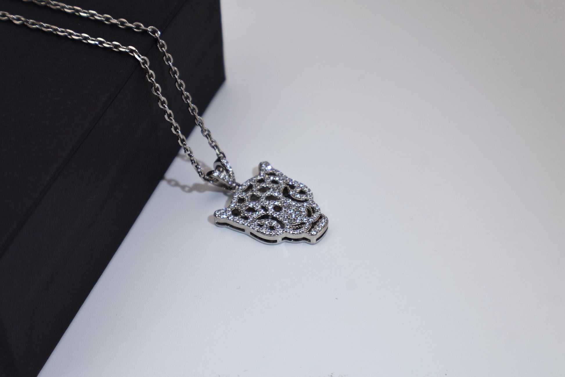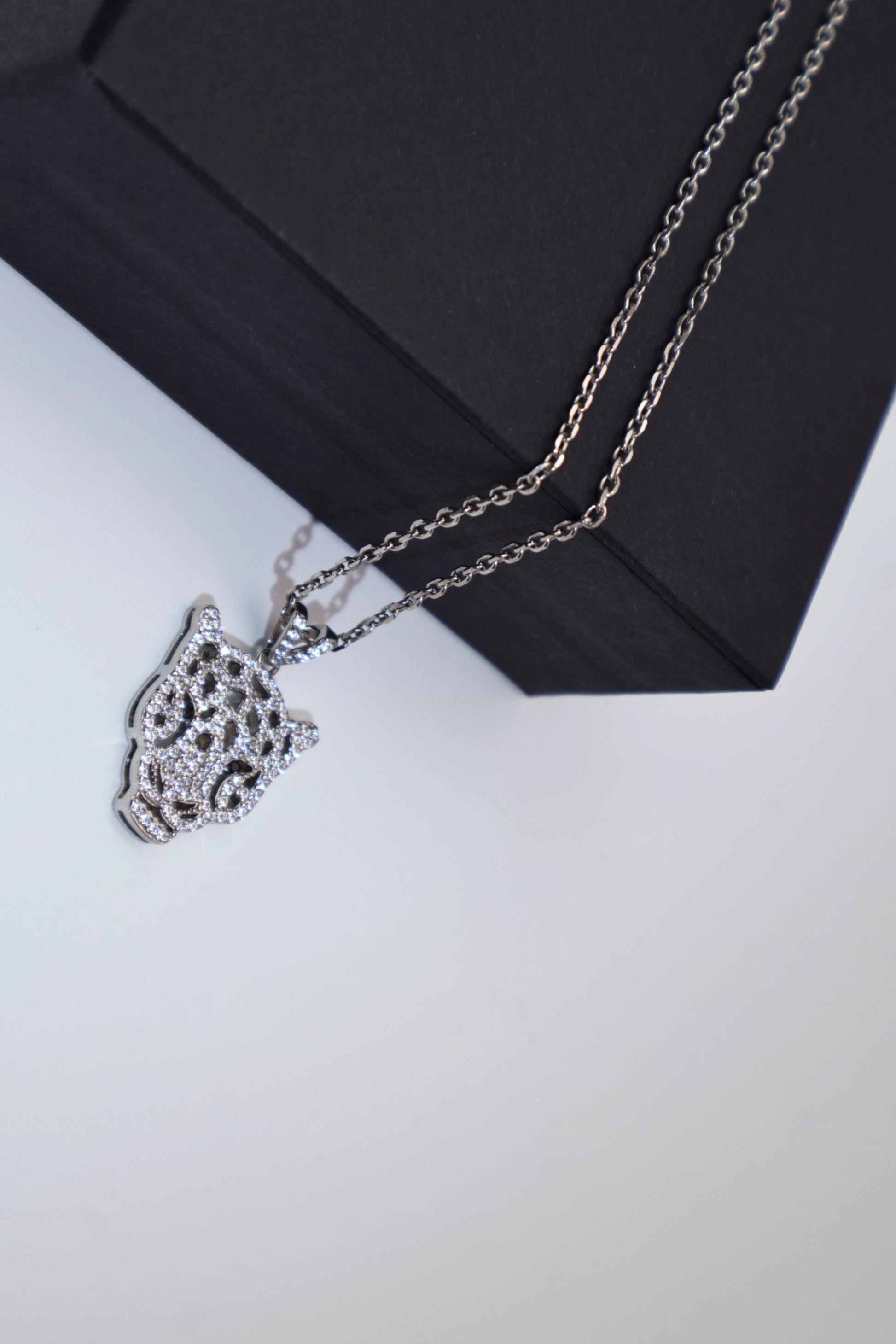 A unisex pendant featuring a full diamond leopard head worn on the chest, it's very dazzling.