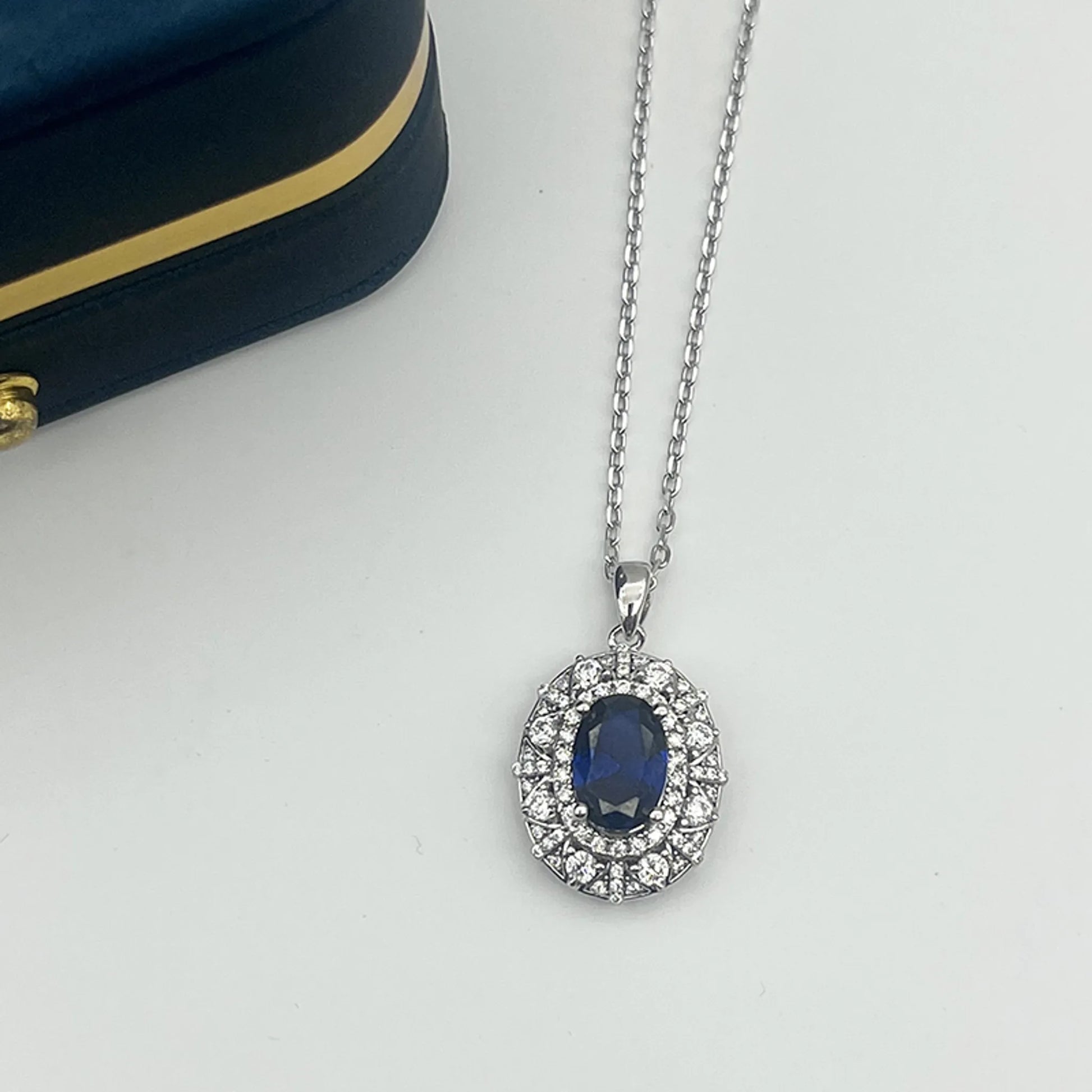 Main Stone: Sapphire; Secondary Stones: imported 5A white cubic zirconia;