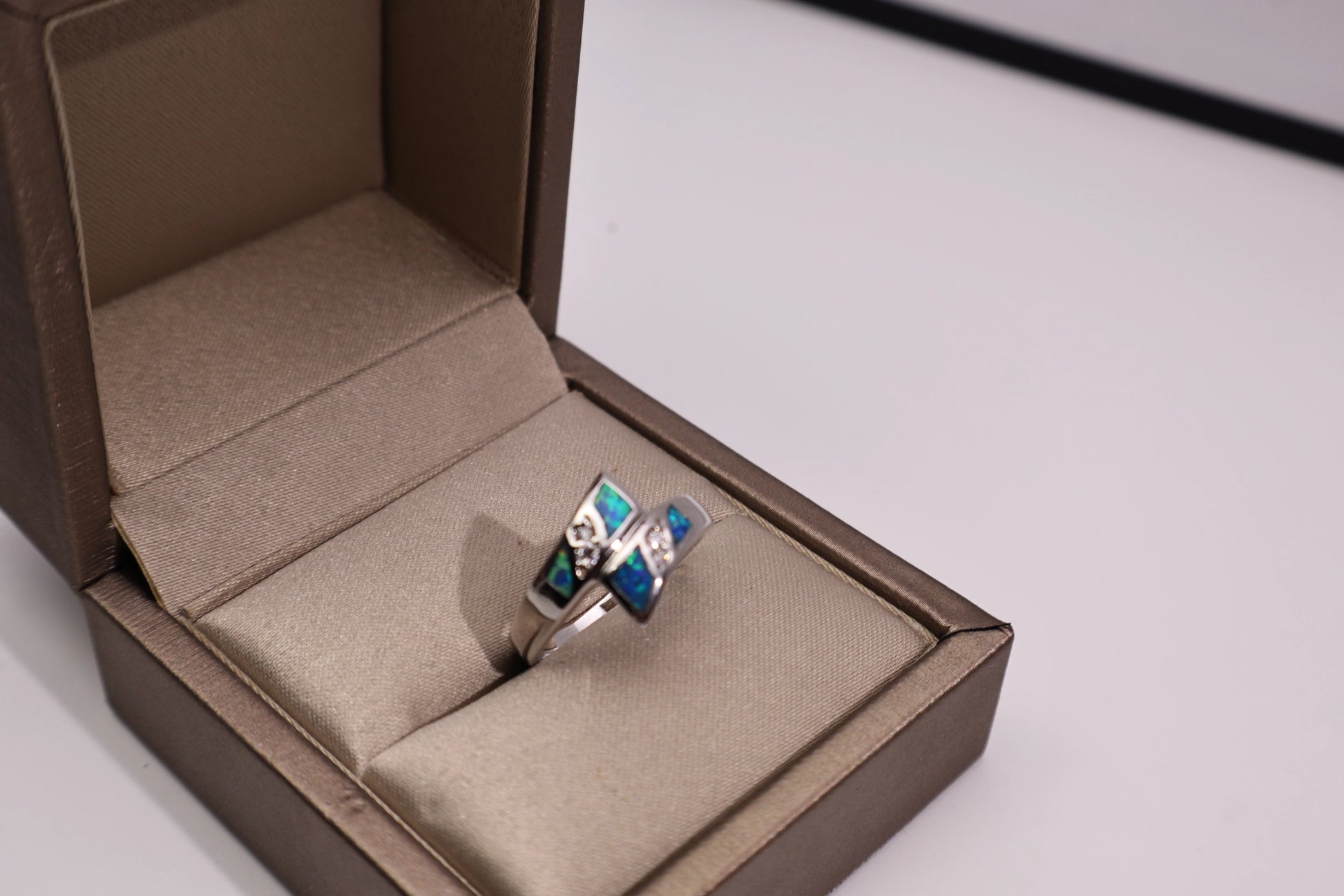 Size: US Size 9# Featuring a synthetic opal as the main stone and imported 5A white zircon as the secondary stone, opal jewelry is an extremely unique and magical piece of jewelry. It is hailed as "a gemstone that combines the colors of all the world's gemstones," thus its symbolism is rich and profound. Core meanings: change, inspiration, and hope. Opal jewelry is perfect for creative, open-minded individuals who refuse to follow the crowd.